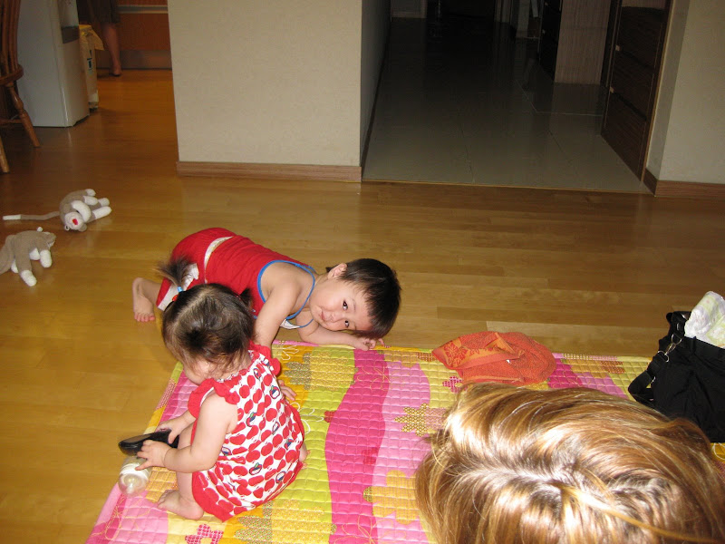 Both kids knew how to bow. It must be the first thing a child is taught over here. Hellena's niece also would shake her head side to side if you said, "dorae, dorae, dorae." Here I thought dorae was just the name of a maedeup knot.